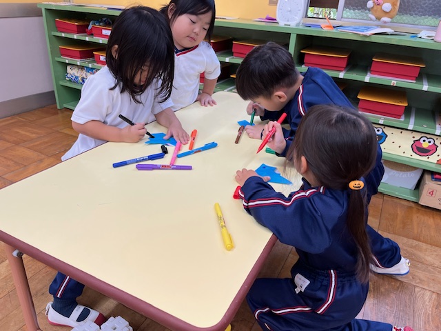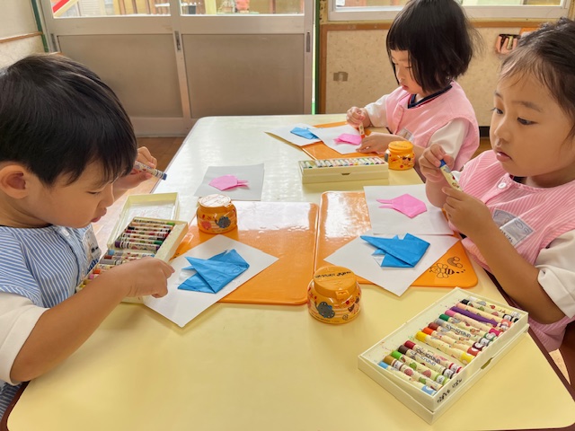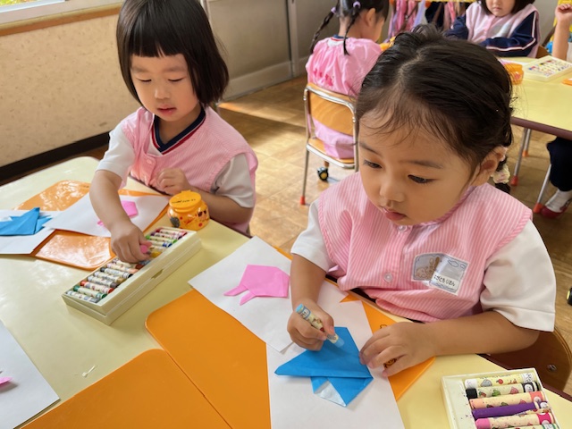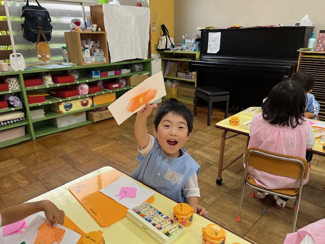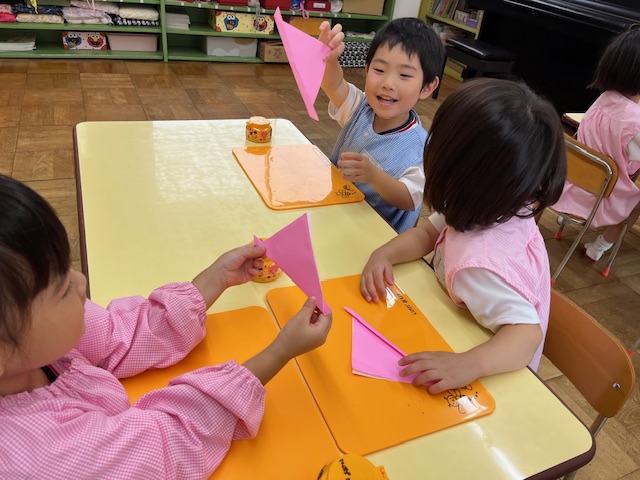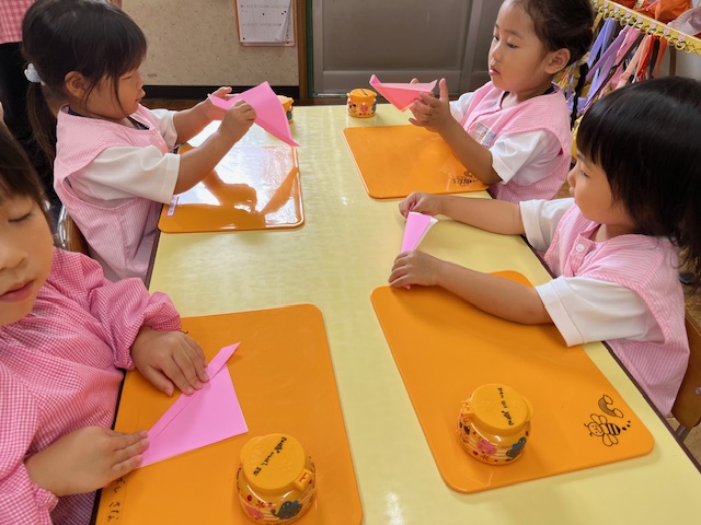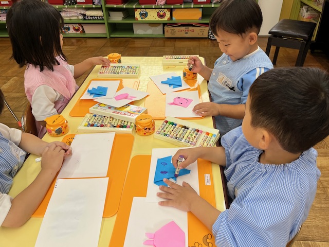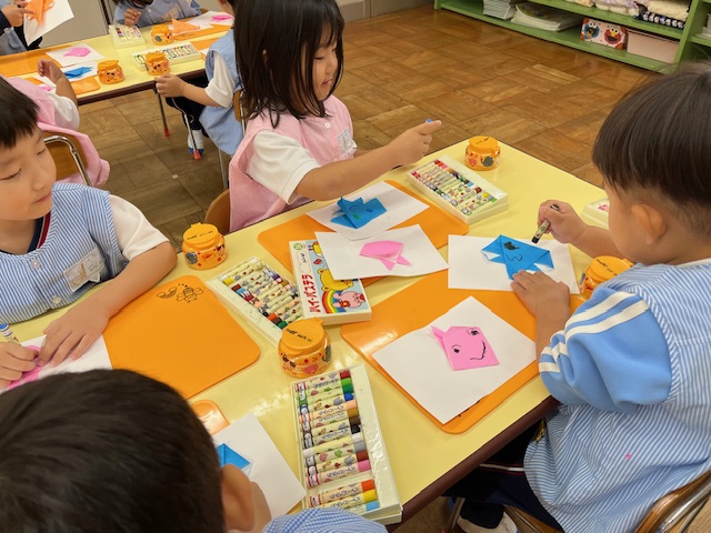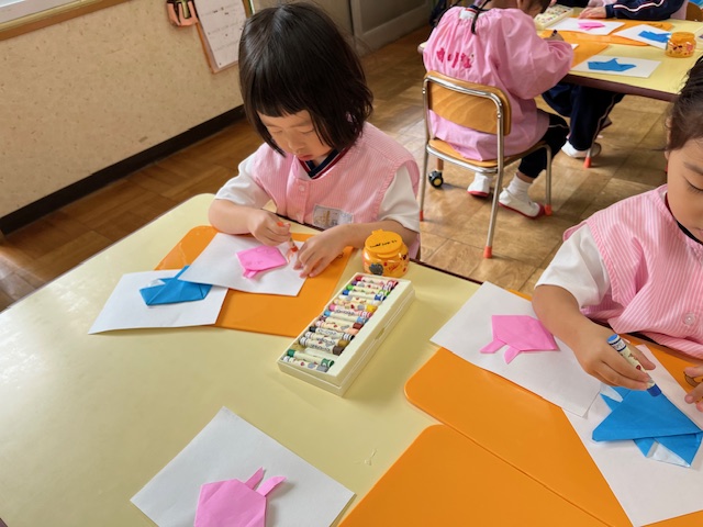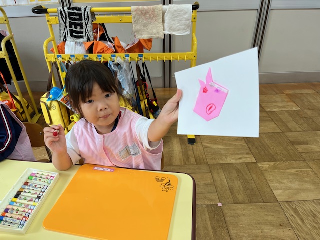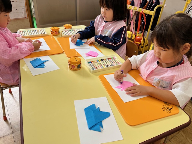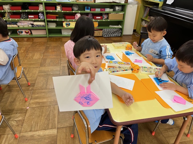 また、折り紙ではゾウさんを作ったり、うさぎさんを作ったりと手先が器用になって上手に折れていました☺️