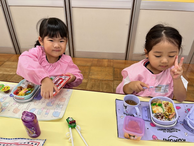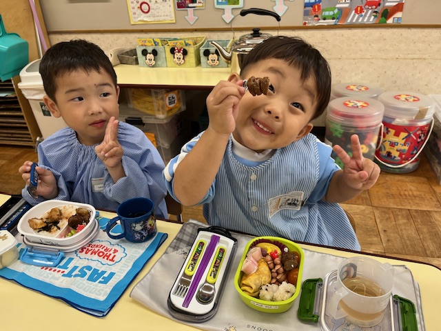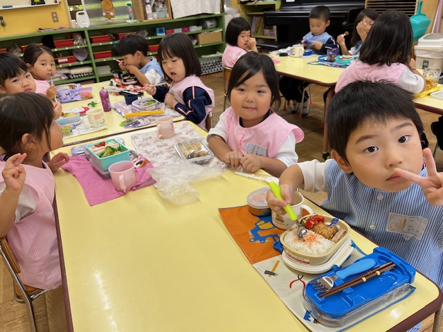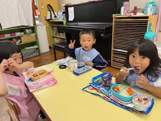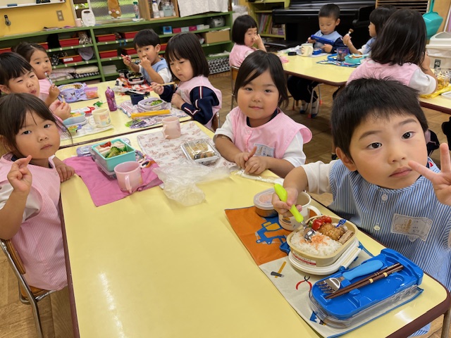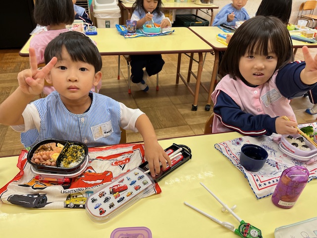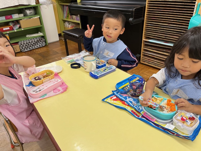今日は年長さんがお芋掘り遠足にお出かけしているということでお弁当の日になっています🍱