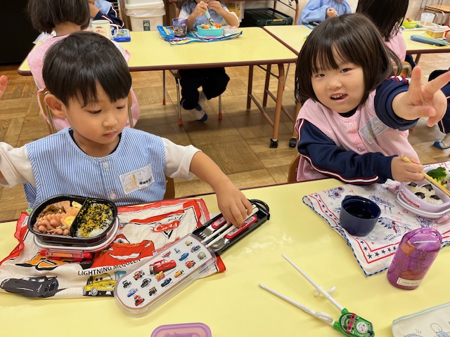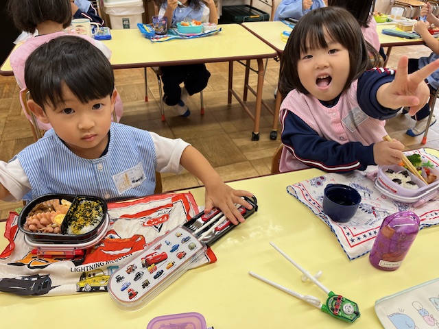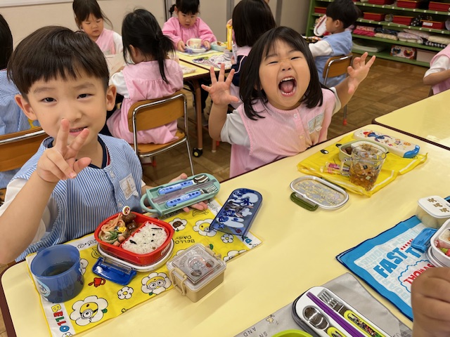 こどもたちはお家の人が作ったお弁当をとっても嬉しそうにしていて、「お弁当まだー?」と登園してから何度も聞いていました(笑)